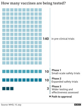 The BBC reports that there are dozens of candidate vaccines in the works. (Click on the image on the left to read the news item.) The BBC report is about the Oxford University coronavirus vaccine. A more informative item was published today at the Oxford University website. Quote:
