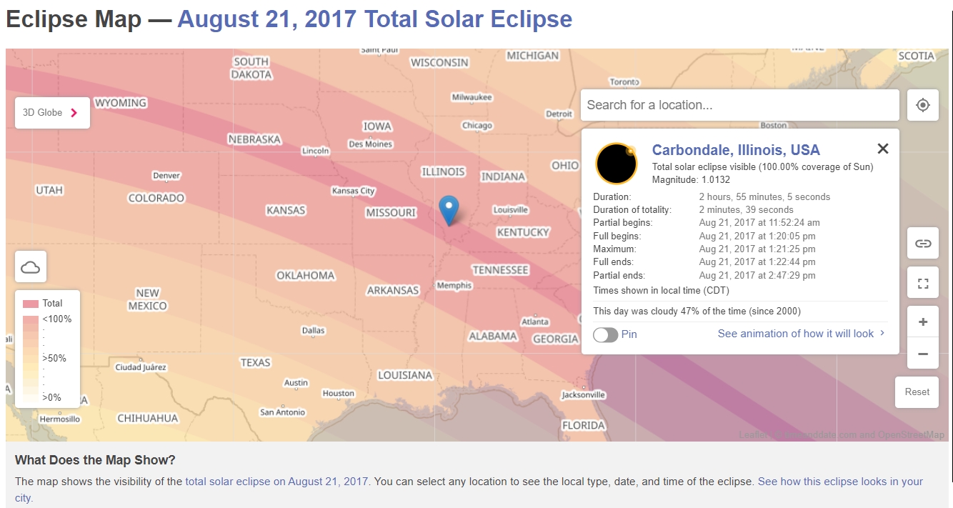 Carbondale, IL is known as the “Solar Eclipse Capital of the United States.” It will also be in the path of totality of the next total solar eclipse in the US on Apr 8, 2024.