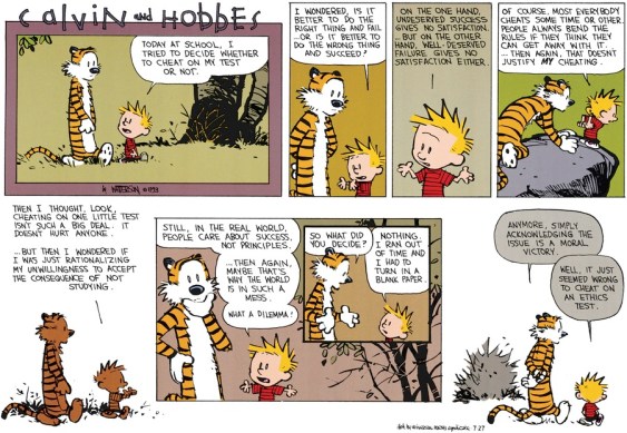 I recommend reading the whole speech which is hosted at MIT.edu. And here’s a favorite Calvin and Hobbes strip (click on image to embiggen):