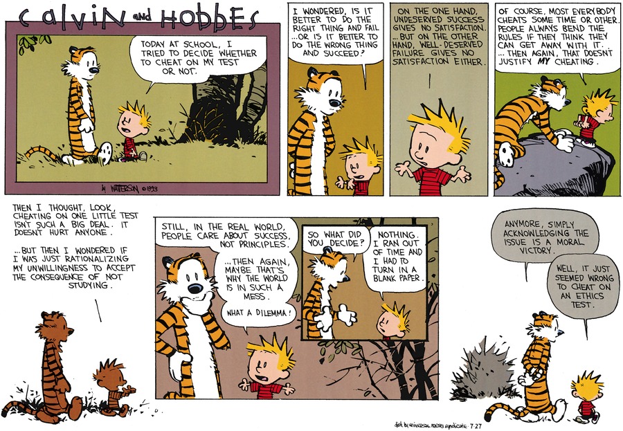 I recommend reading the whole speech which is hosted at MIT.edu. And here’s a favorite Calvin and Hobbes strip (click on image to embiggen):