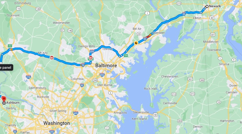 The latest road trip was required. I drove from Newark, DE, to Dallas, TX, via Atlanta, GA. The journey was in three parts. First, the shortest of the three was from Newark, DE, to Ashburn, VA. I met a huge amount of traffic and ended up doing a 3 hour journey in 4 and a half hour.