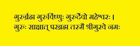 Rough translation: The guru is Bramha (one who creates); the guru is Vishnu (one who preserves creation); and the guru is the god Maheshwara (aka Shiva, one who completes the cycle creation by annihilation). The guru is the personification of the Ultimate Bramha. I salute the guru.