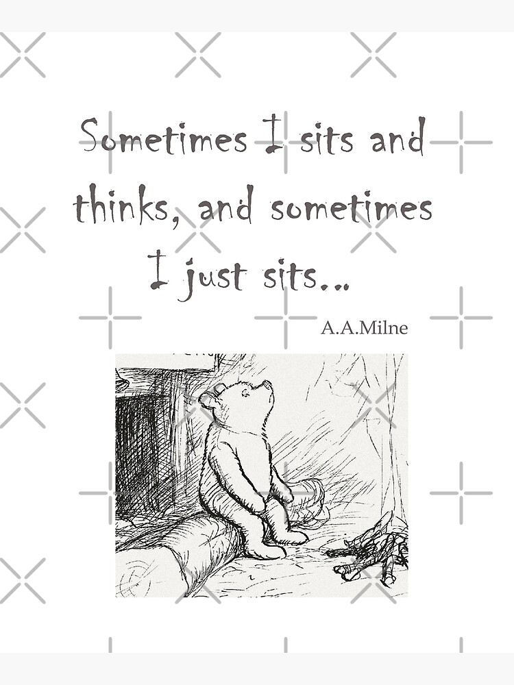 The quote at the top of this piece — “Sometimes I sits and thinks, and sometimes I just sits” — resonates with my preference for contemplation and idleness. It is associated with A. A. Milne, the author of Winnie the Pooh. Quote Investigator traces it to the Boston Record of February 1905.