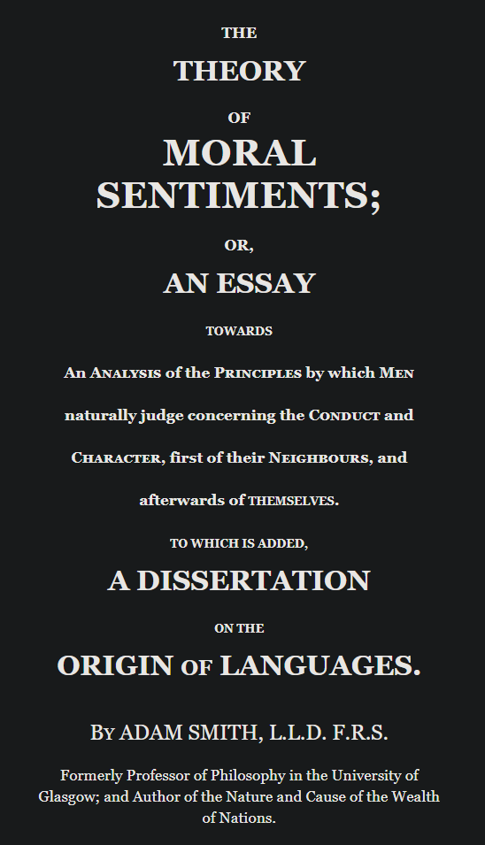 It’s important to note that Adam Smith was not what we call an economist today primarily because there was no such discipline then we call economics today. He was a moral philosopher. His first book’s first paragraph is —