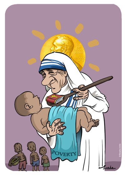 Mother Teresa’s business was : Money for a good conscience. The donors benefited the most from this. The poor hardly. Whosoever believed that Mother Teresa wanted to change the world, eliminate suffering or fight poverty, simply wanted to believe it for their own sakes. Such people did not listen to her. To be poor, to suffer was a goal, almost an ambition or an achievement for her and she imposed this goal upon those under her wings; her actual ordained goal was the hereafter.